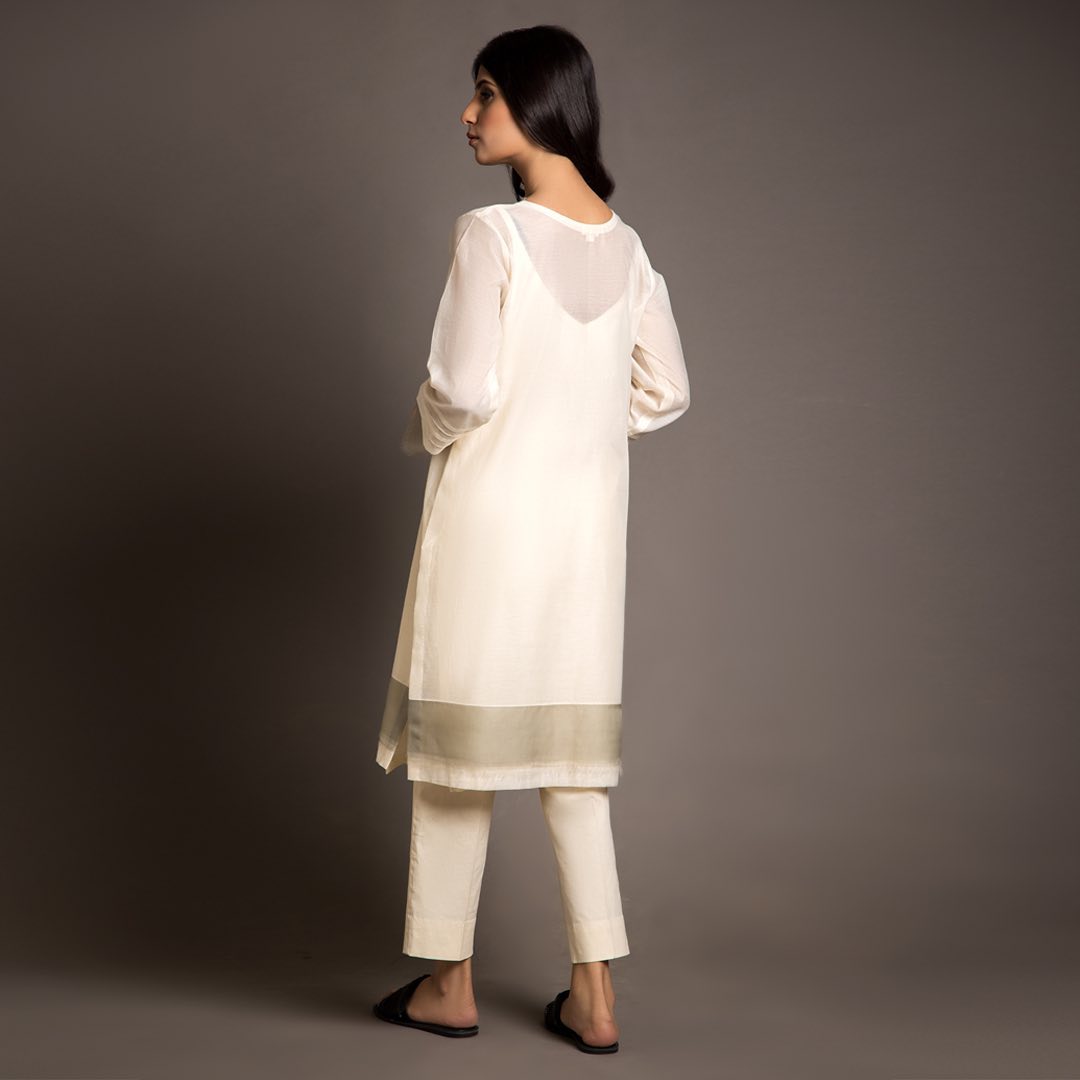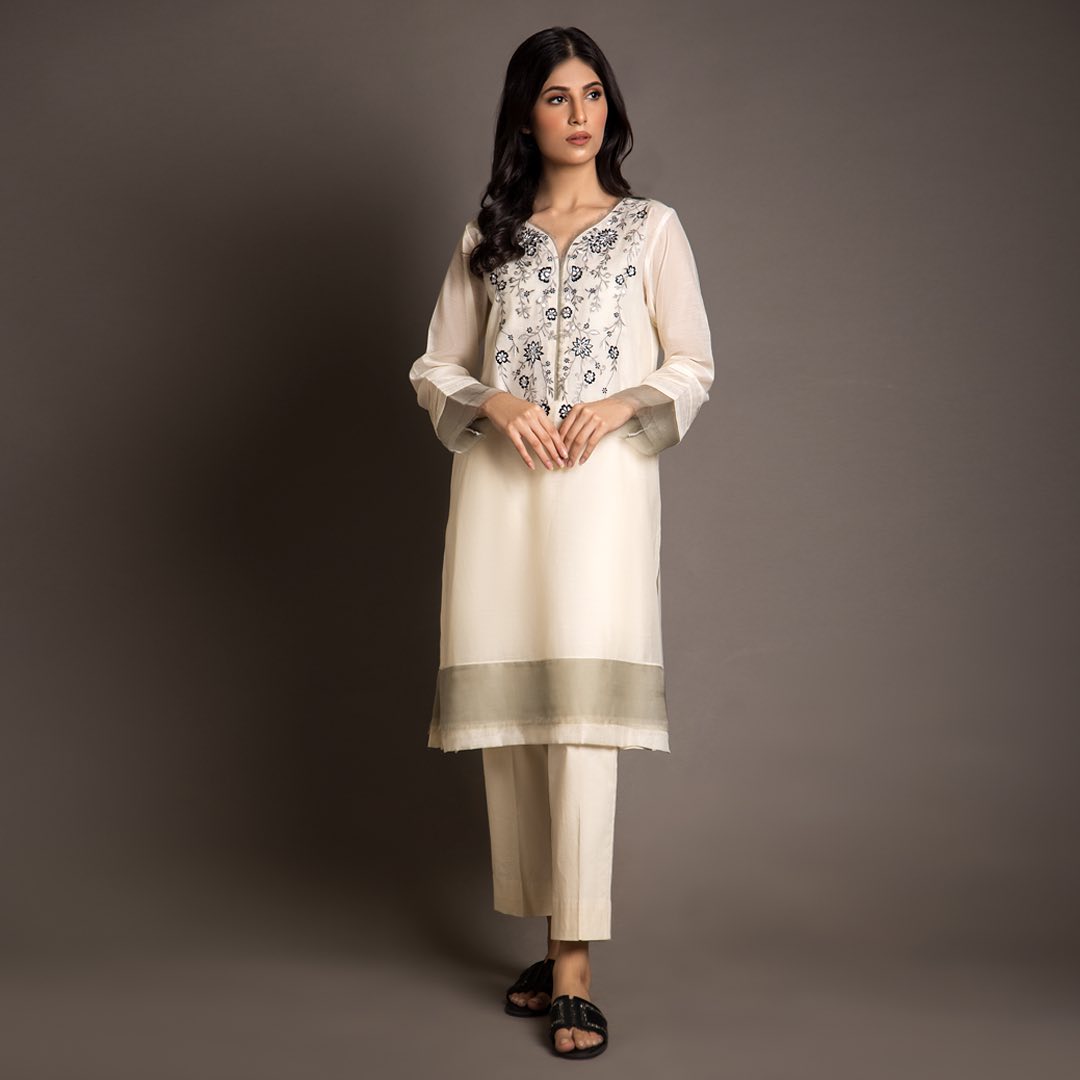 Shirt on cotton silk with resham and anchor work along with plain pants.