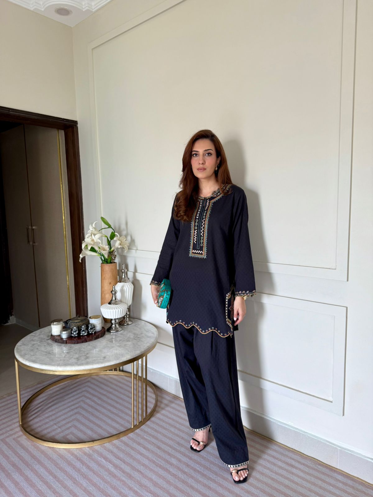 a handmade irish piece with beautiful shades of resham complimenting the style