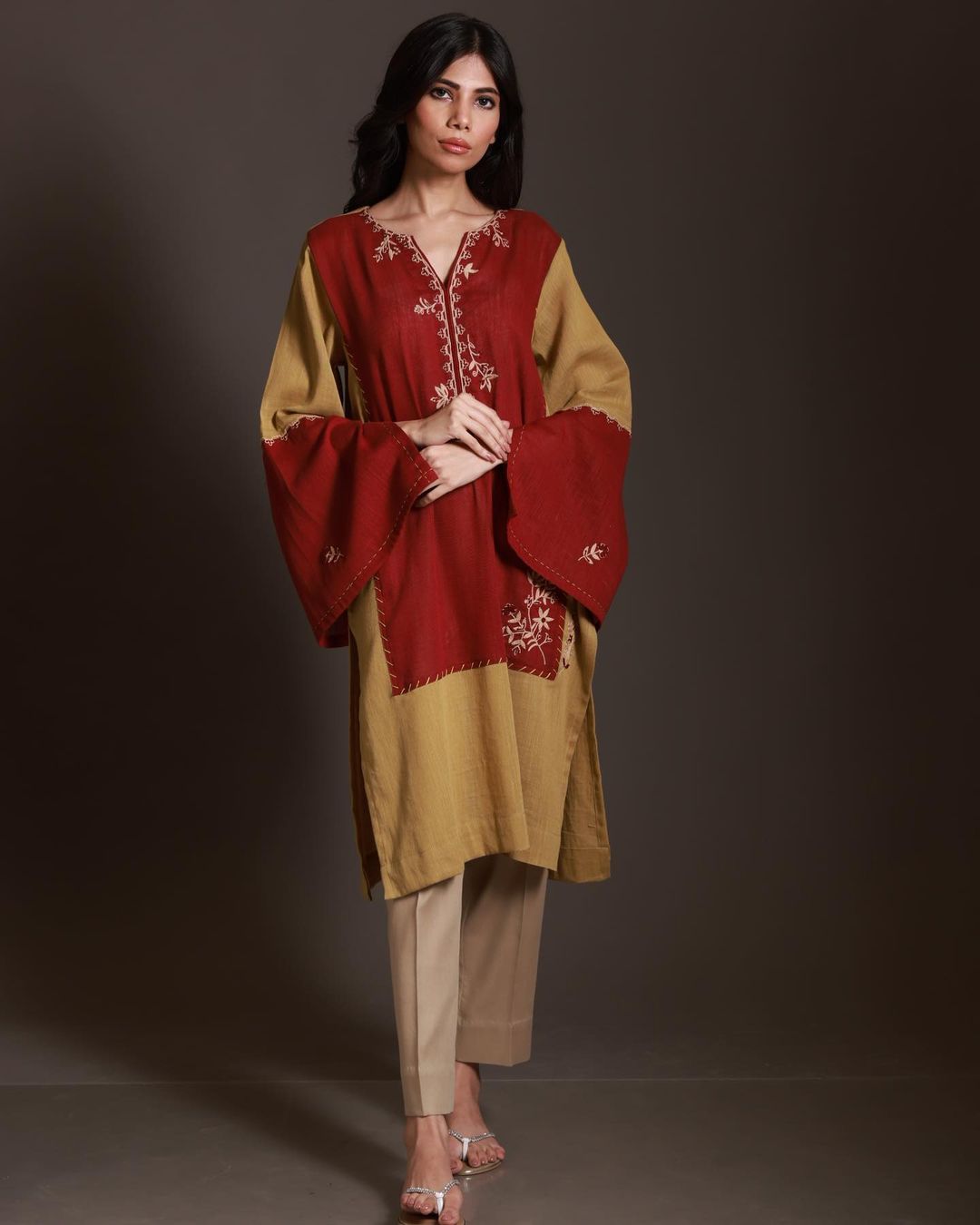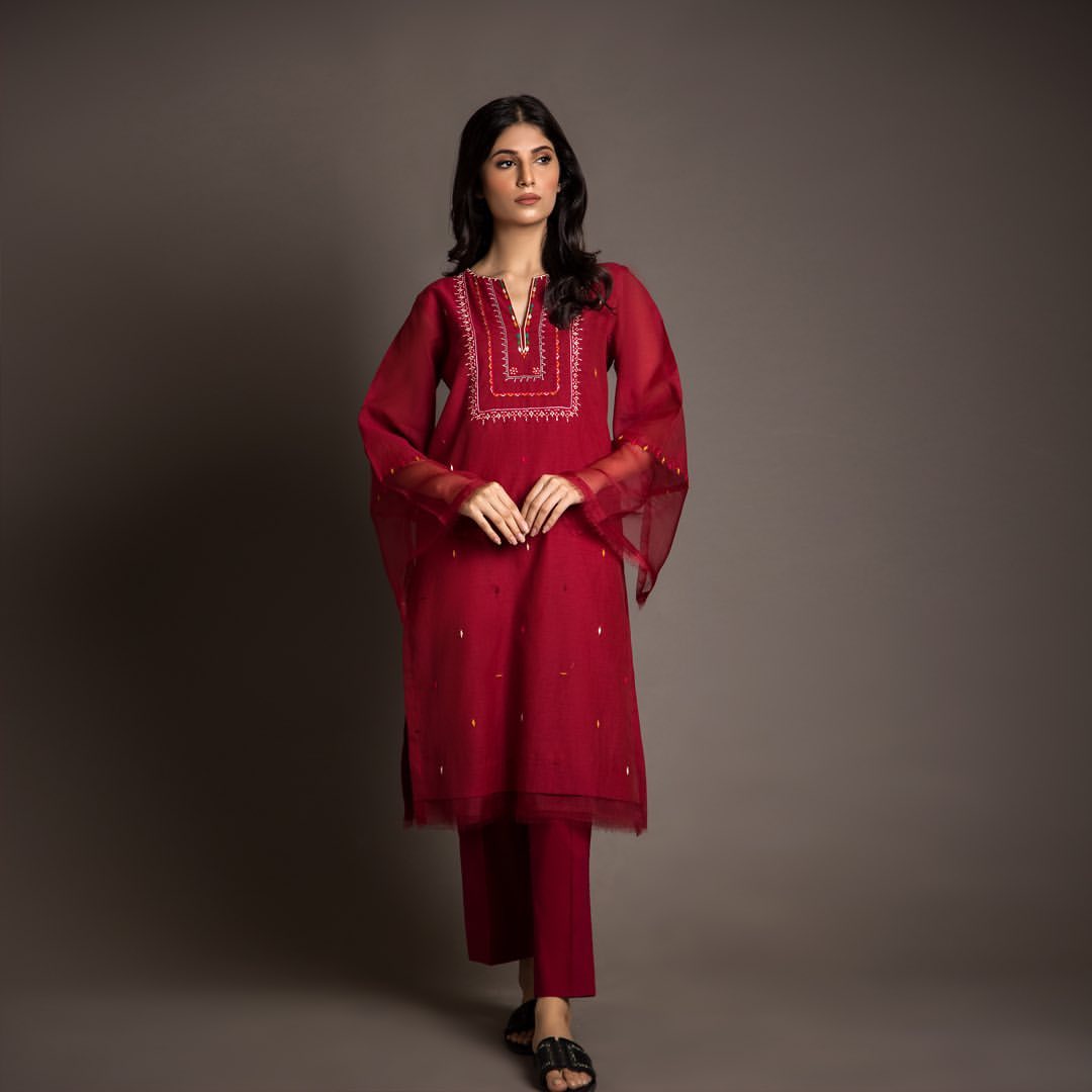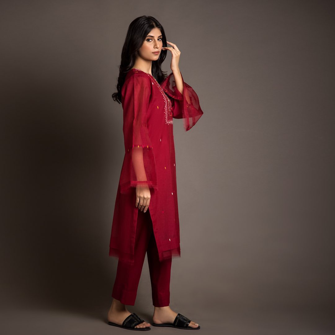 Previous Product Next Product Laal ₨ 18,500 Shirt on cotton silk with hand embroidery along with plain pants Size Choose an optionSmallMediumLargeCustom OrderSmallMediumLargeCustom OrderClear Laal quantity Add to cart SKU: N/A Category: Pret Wear Size ChartsAll Sizes Description Description “Colors may slightly vary depending on the screen setting.” Opens in a new window Tweet This Product Opens in a new window Share on Facebook Opens in a new window Pin This Product Opens in a new window Mail This Product Related products Quick View Quick View Pret WearAyesha ₨ 14,500 Select options This product has multiple variants. The options may be chosen on the product page Quick View Quick View Daily Wear, Pret WearLaila ₨ 12,500 Select options This product has multiple variants. The options may be chosen on the product page