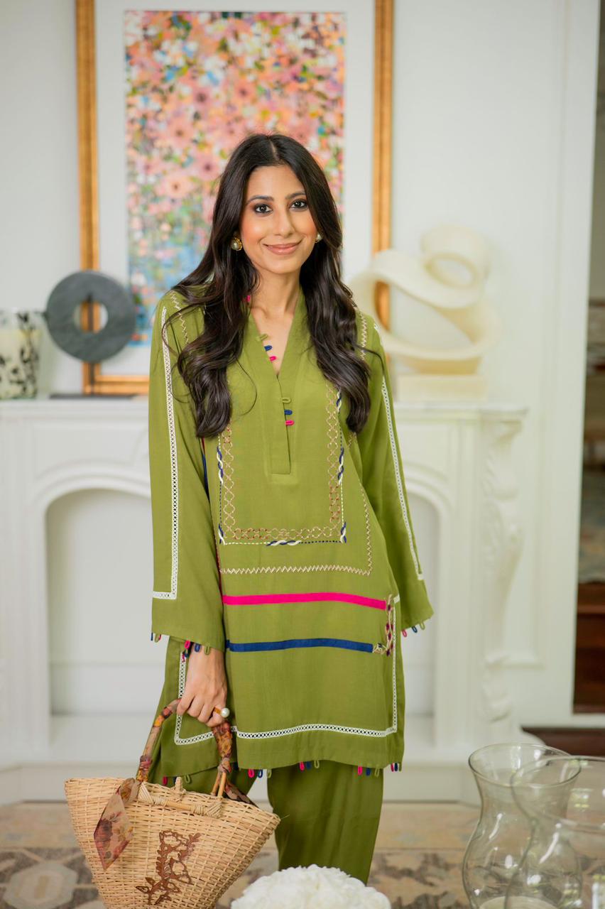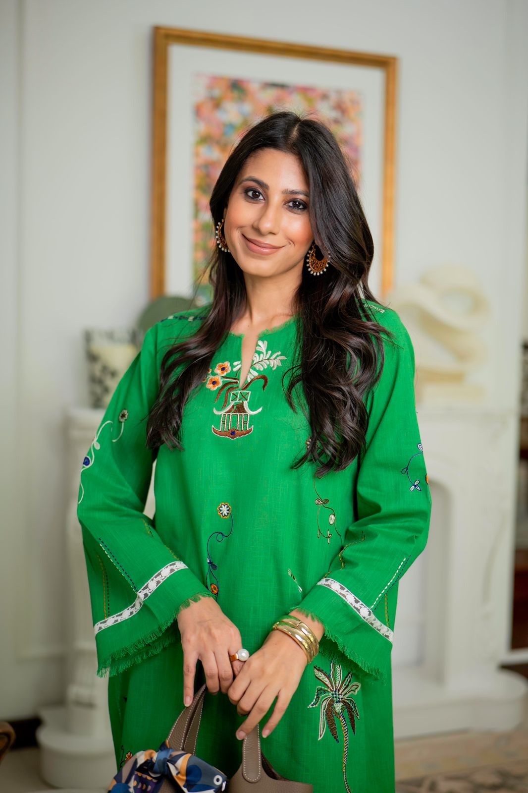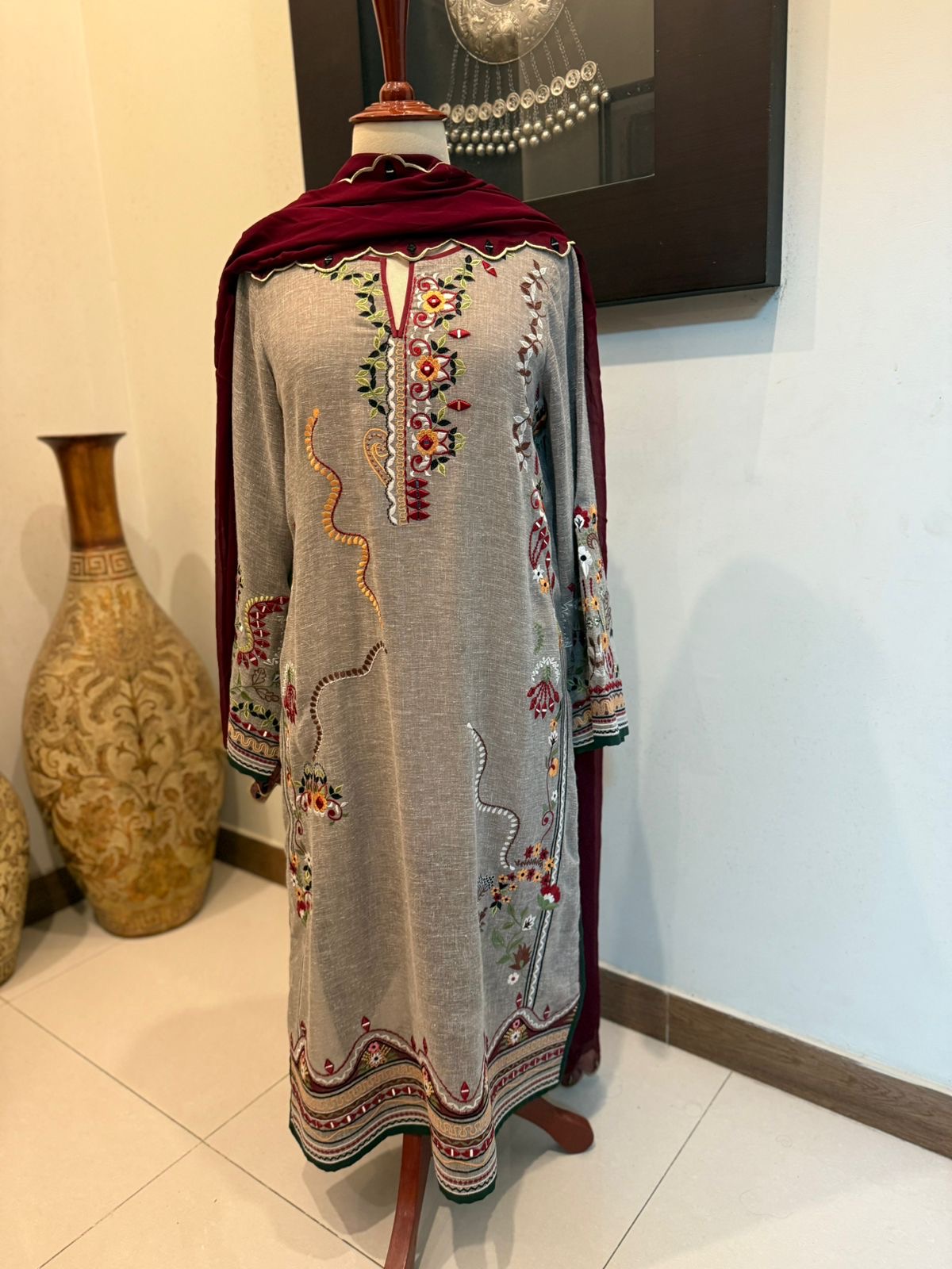 Beautiful soft irish, Cord hand embroidered work, with resham on shirt finished and lace and loops. The best for Am to PM