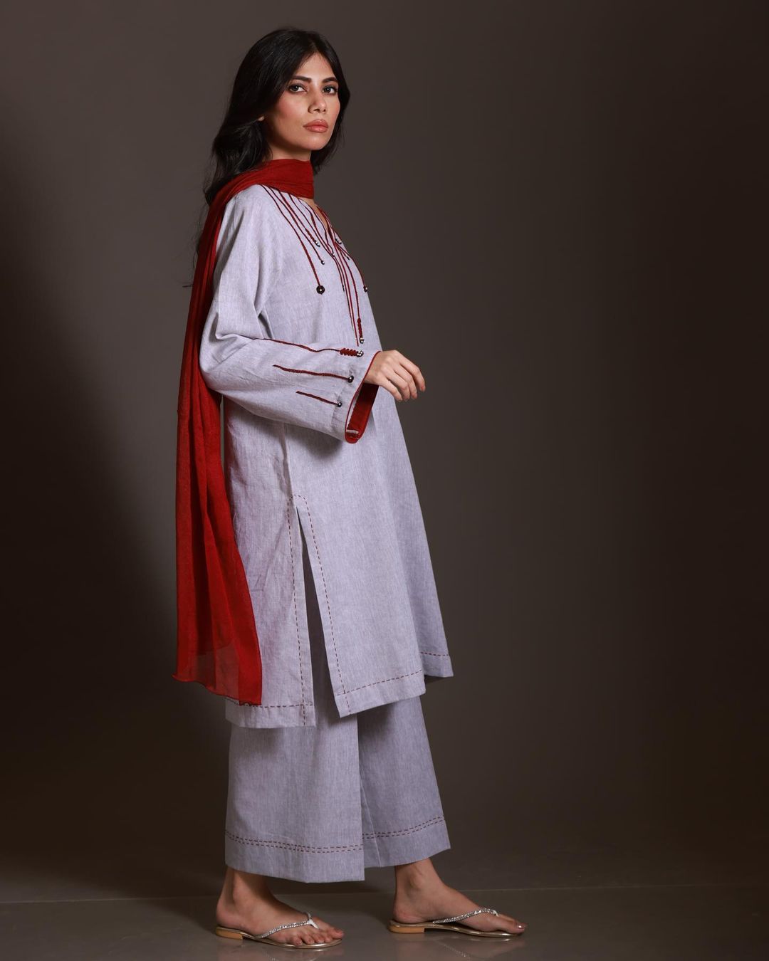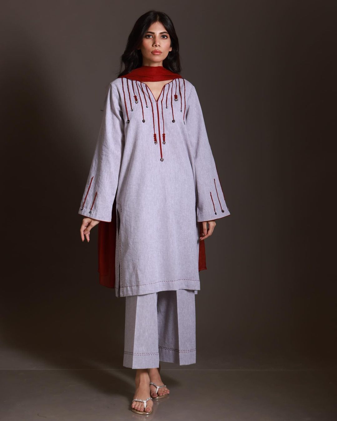 Pure soft Irish with hand embroidery with azaar pants and duppatta.