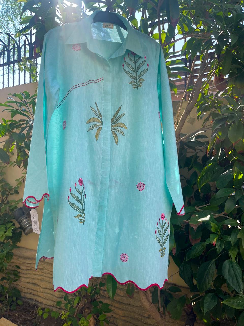This ensemble exudes sophistication with its elegant hand embroidery, complemented by luxurious velvet appliqué work on both the shirt and izaar. The intricate detailing adds depth and texture, enhancing the overall allure of the outfit. Crafted from premium kora silk, the fabric’s lightweight yet refined finish provides a graceful drape, ensuring both comfort and style. Perfectly balanced between traditional artistry and modern elegance, this piece is ideal for making a statement on any special occasion.