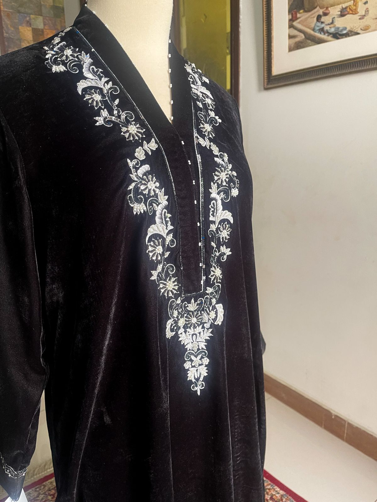 Adorned with multi hued resham embroidery coupled with zardozi pearl and sequins work