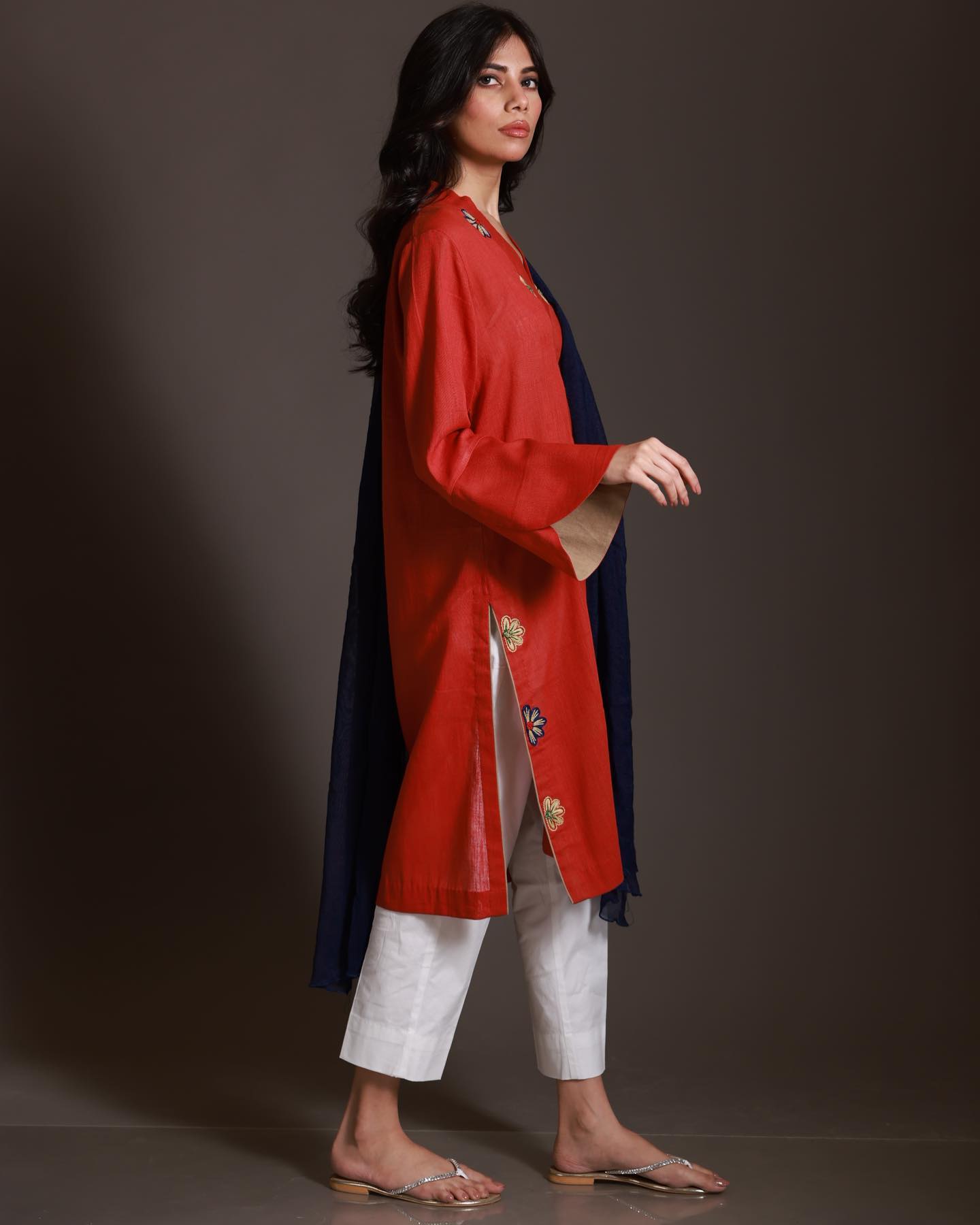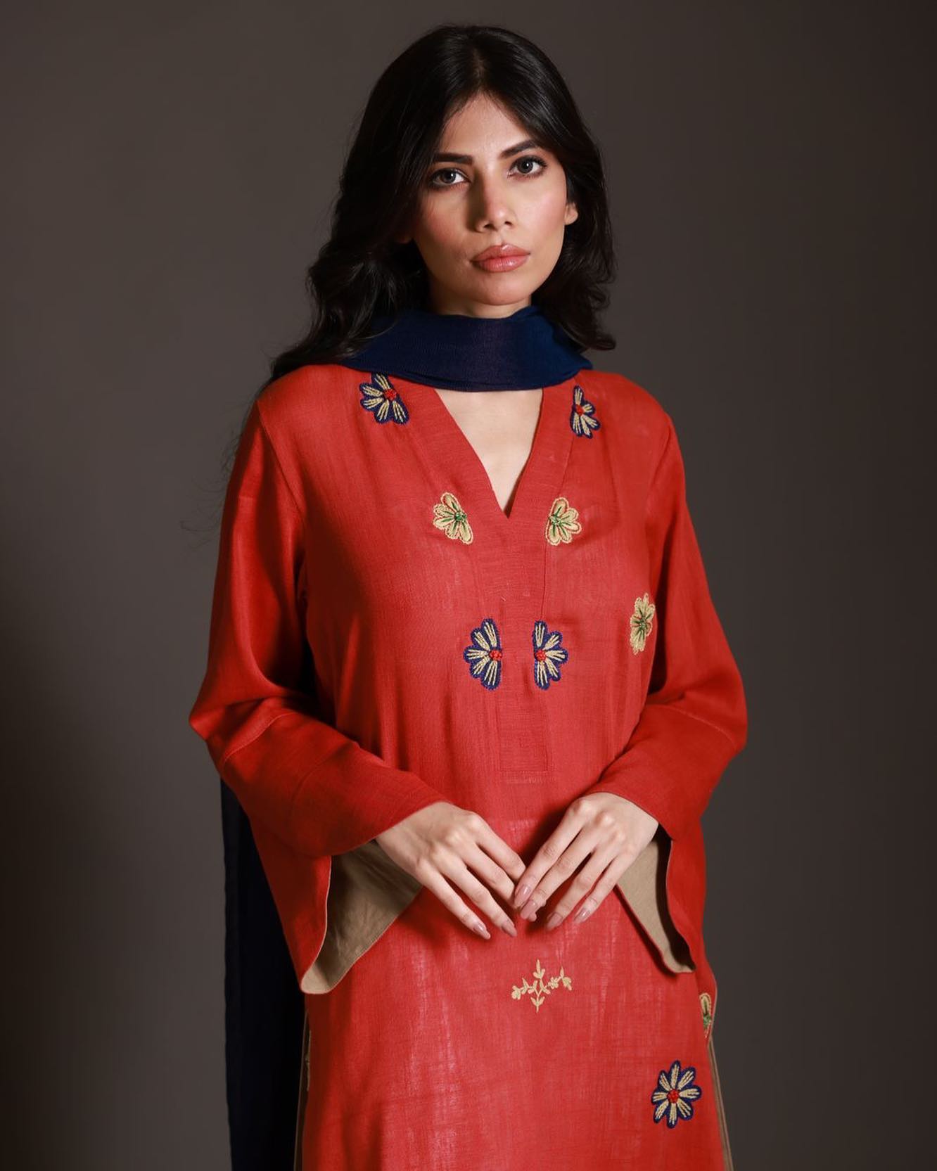Shirt on jute irish with appliqué and hand embroidery with plain pants and duppatta.